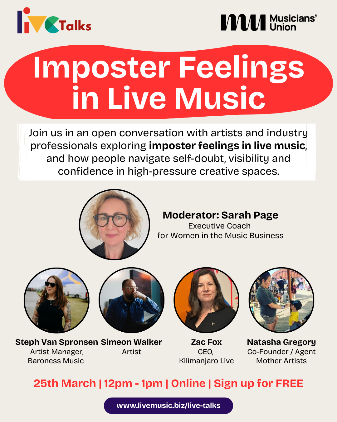 LIVE Talks: Imposter Feelings in Live Music, in partnership with the Musicians’ Union.